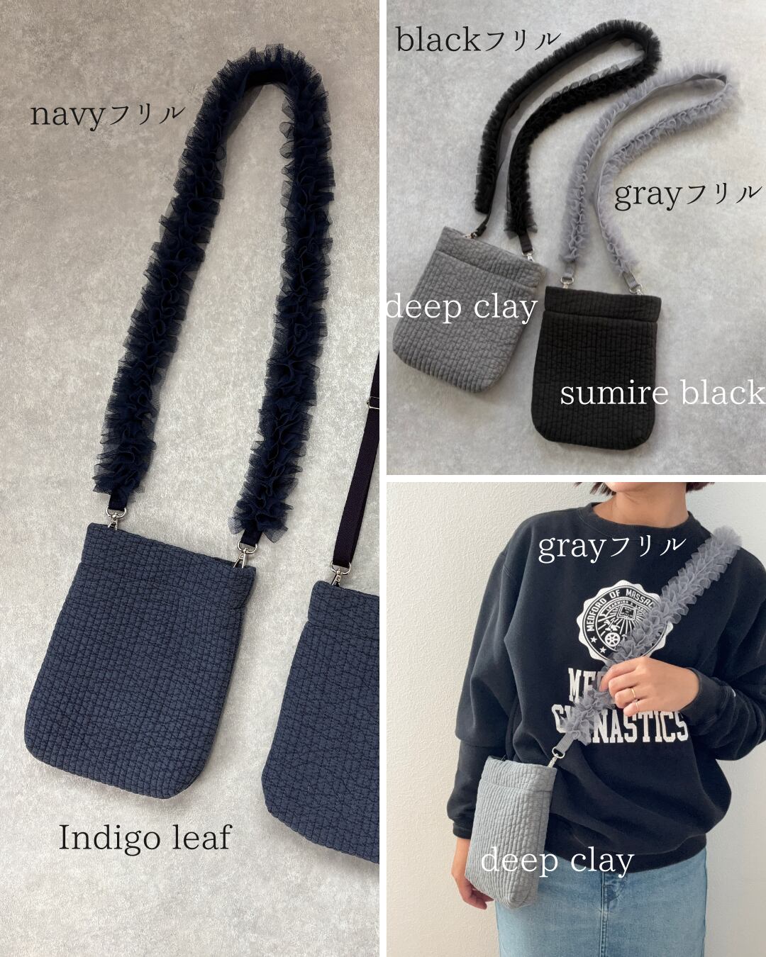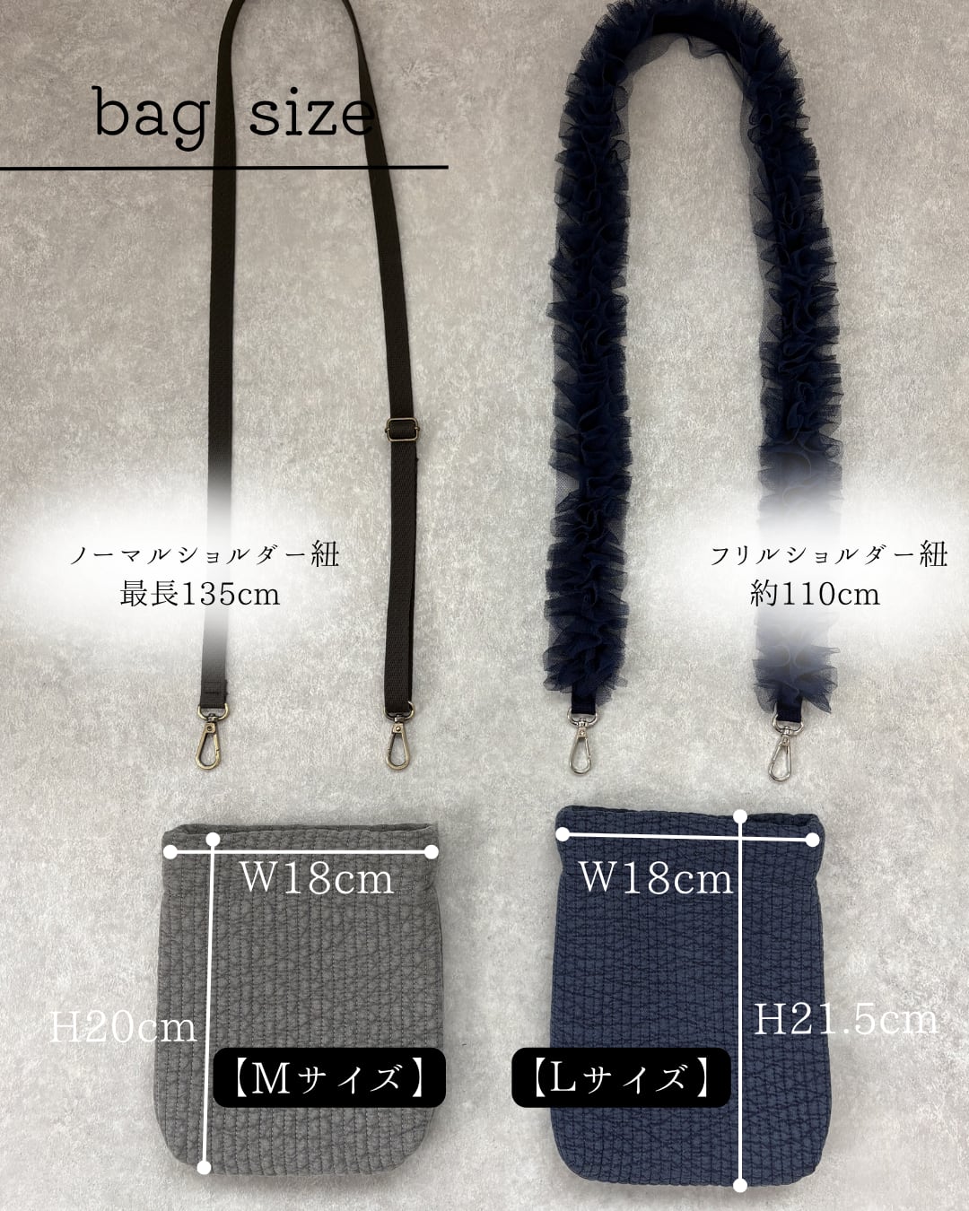 ショルダー紐は、ノーマルとフリルから選べます(値段別)