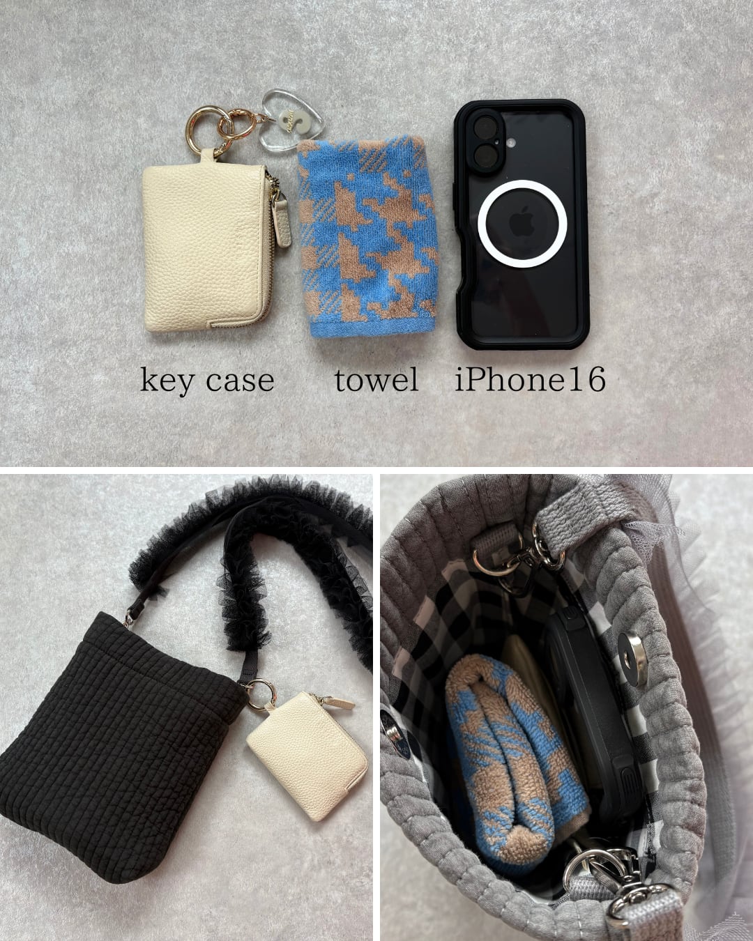 スマホ、お財布、鍵。