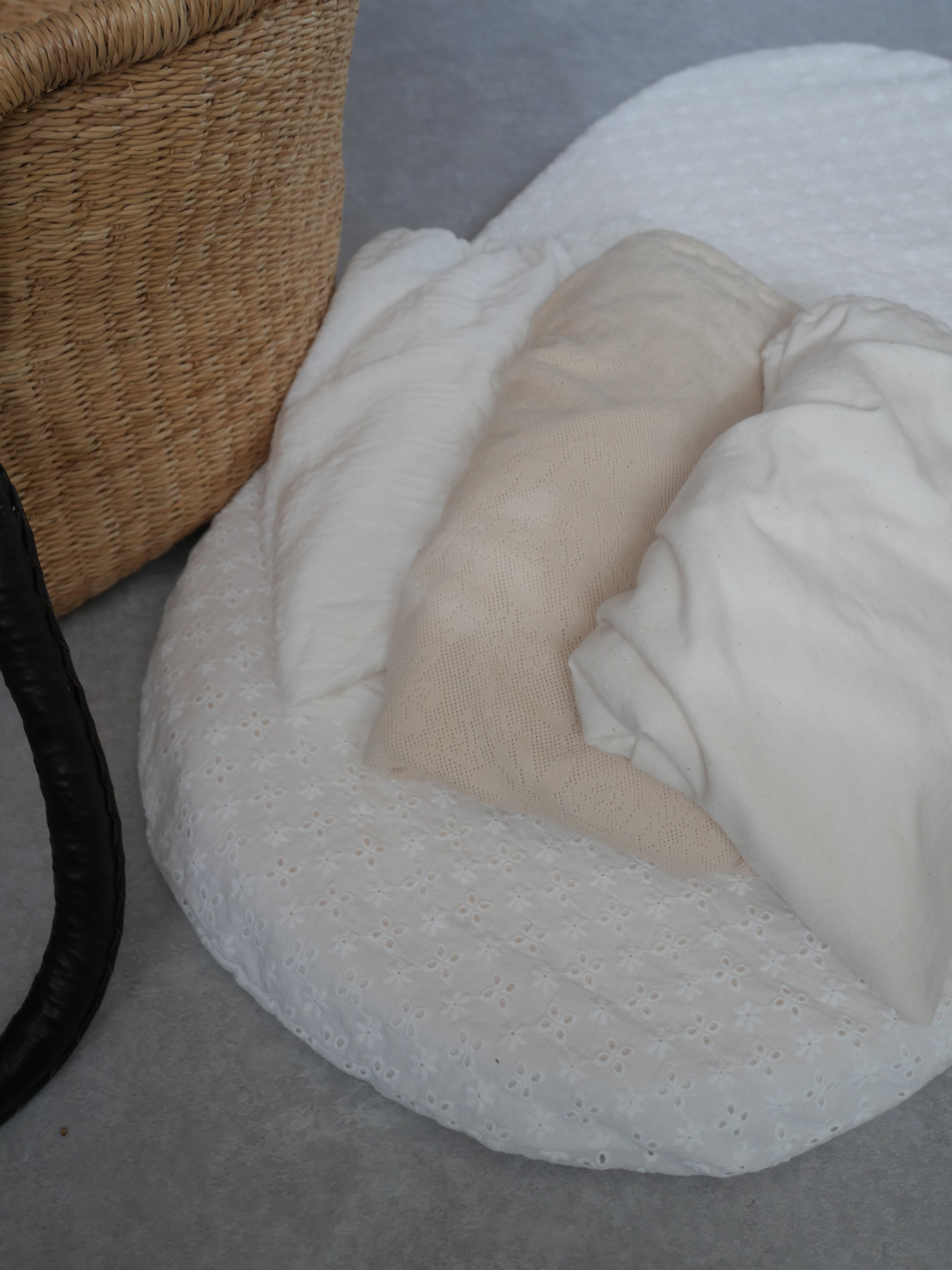 生成りのナチュラルなお色味でクーファンに馴染むカバーです。