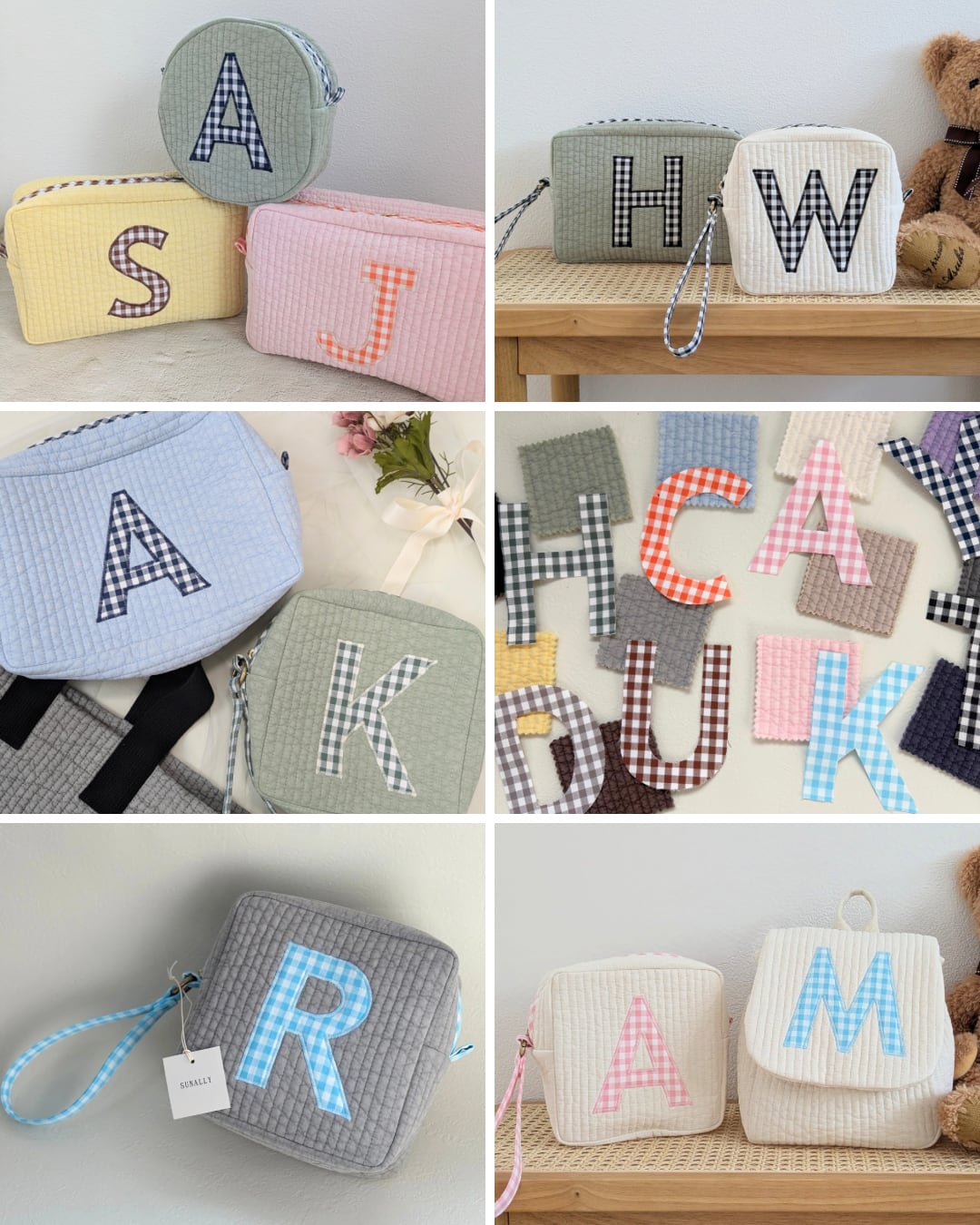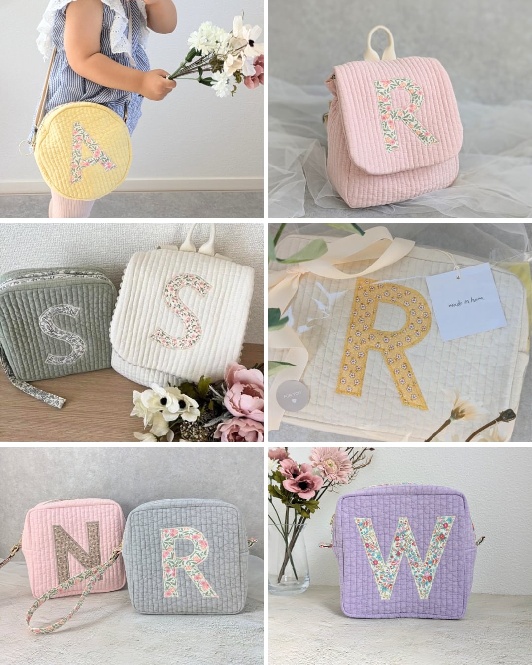 韓国のキルティング生地 nubi を使った イニシャルポーチです。