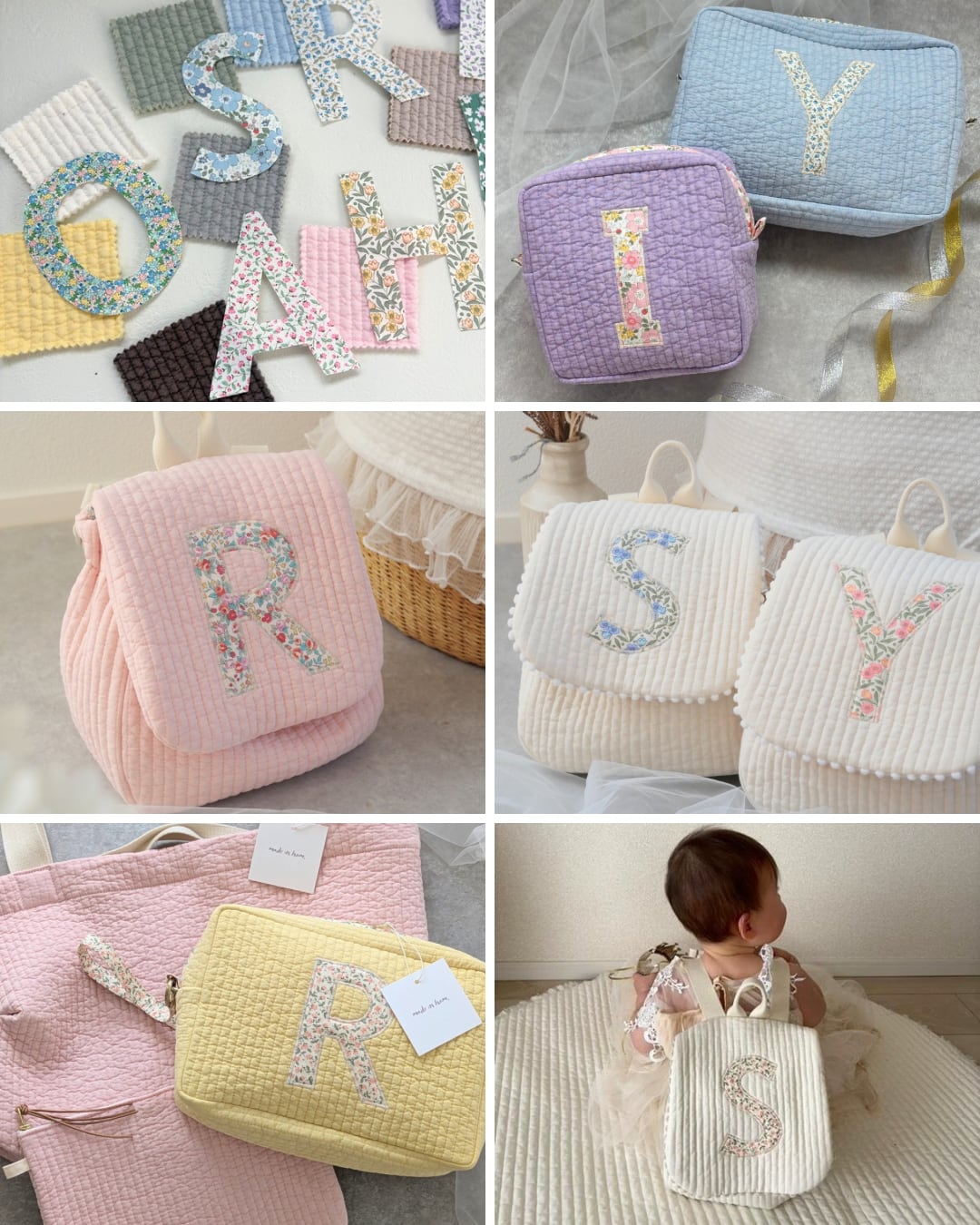 韓国のキルティング生地 nubi を使った イニシャルポーチ