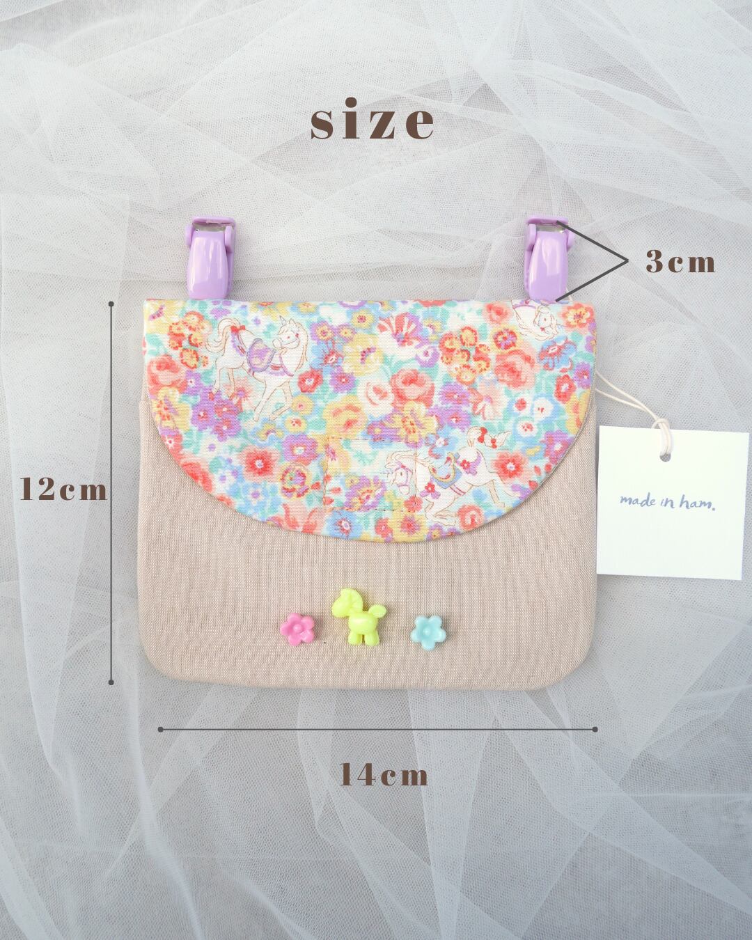 クリップを外せば、サニタリーポーチとして普通サイズのナプキンが2枚程度、リップなど細々とした小物の収納にもお使い頂けます◎