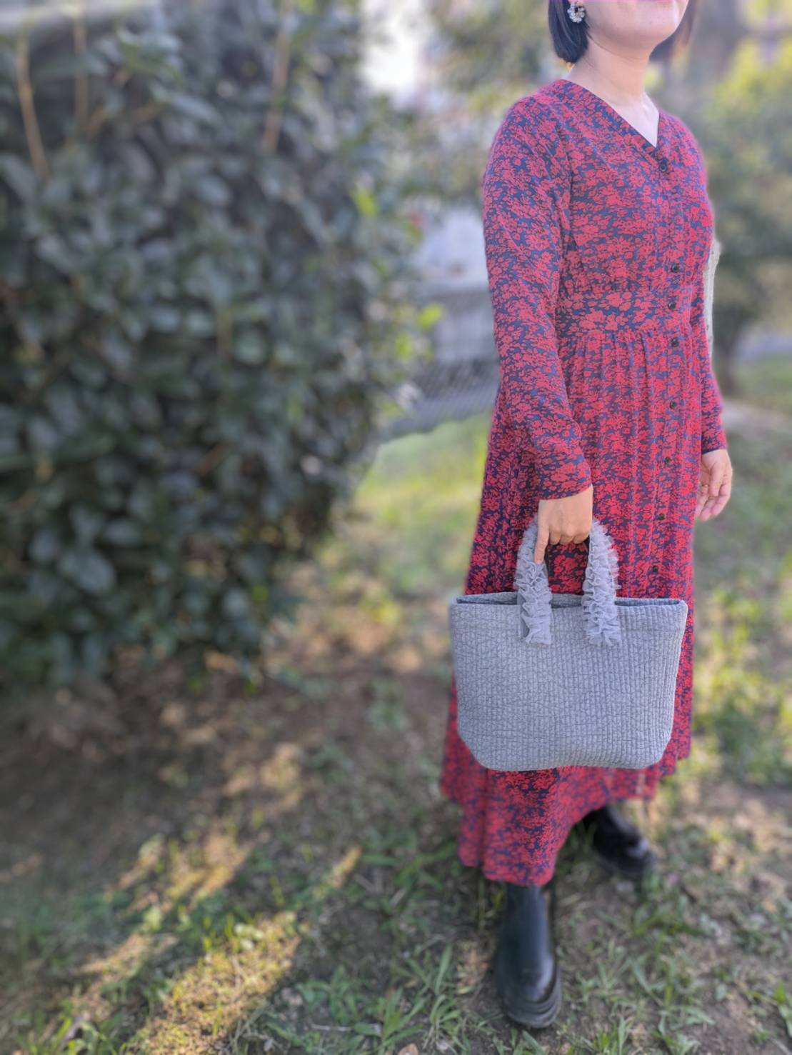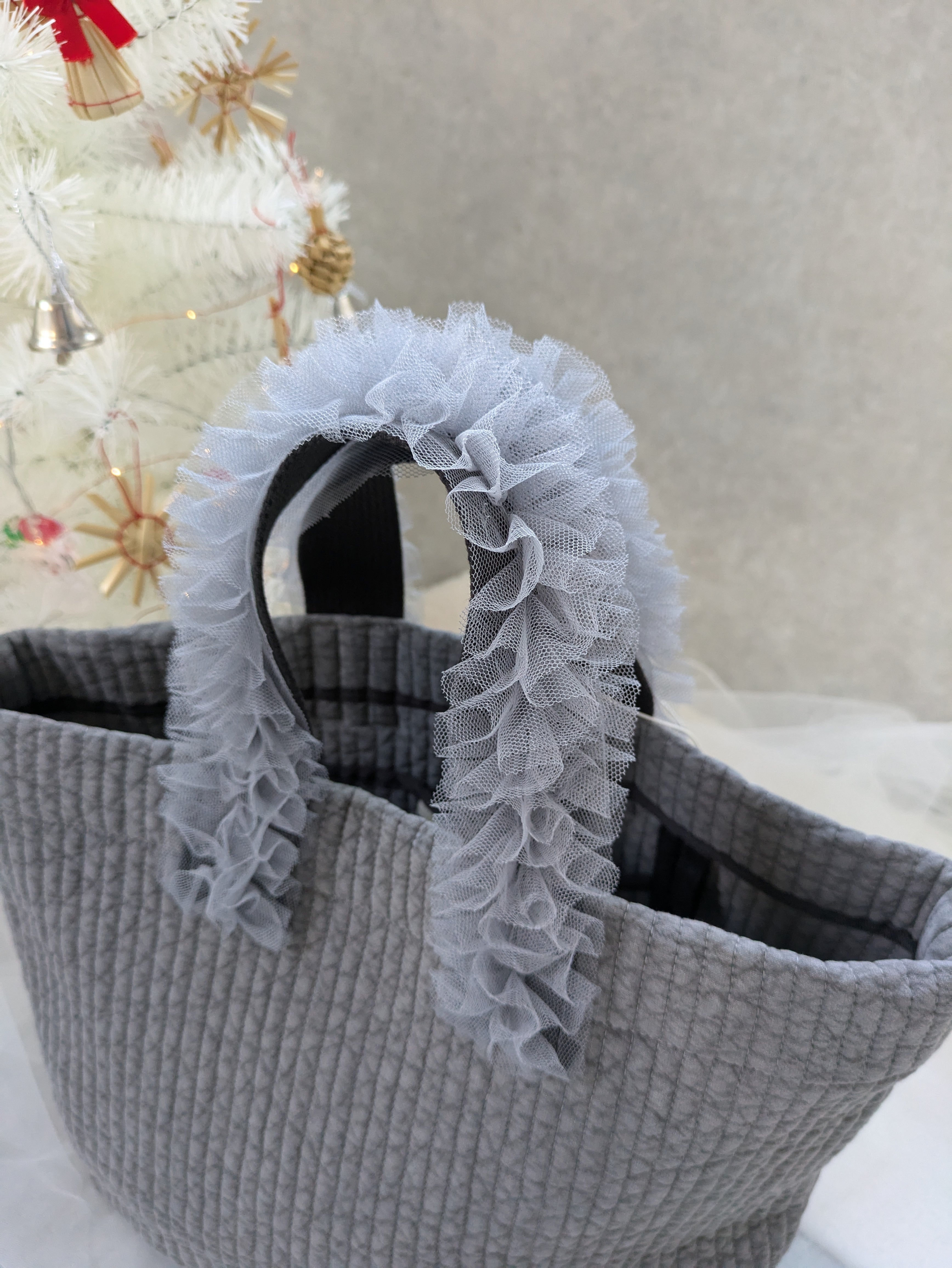 *即納*【washable】nubi mini tote (ダークグレー×グレーチュールフリル )