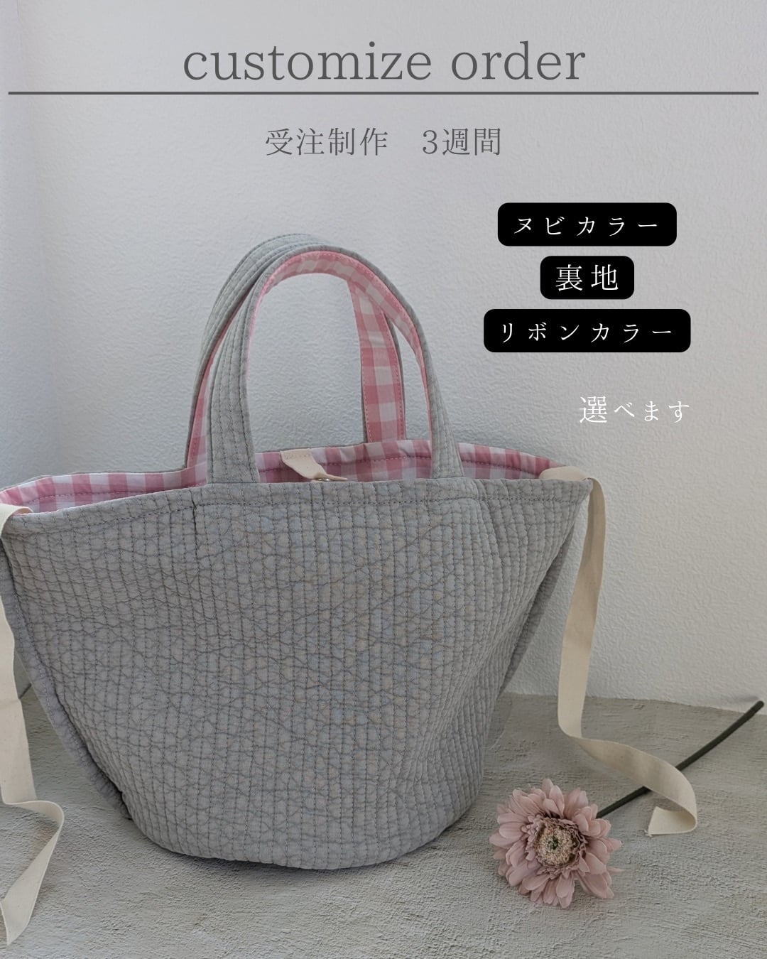 韓国のキルティング生地 nubi を使った丸底トートバッグ